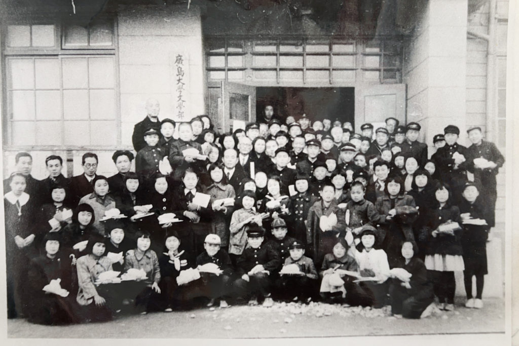 105 stories were chosen from about 1000 stories written by boys and girls in elementary, junior high and high school in Hiroshima city and suburbs. I never thought that my memoir would be published in the book, but in October, Children of the A-Bomb was published byIwanami Shoten. Before that, we weren’t even told that book had been published. In February of the next year, about 50 of the 105 children who wrote their memoirs were invited to the Literature Faculty of Hiroshima University. When we arrived there, many notable people of Hiroshima attended in full dress.