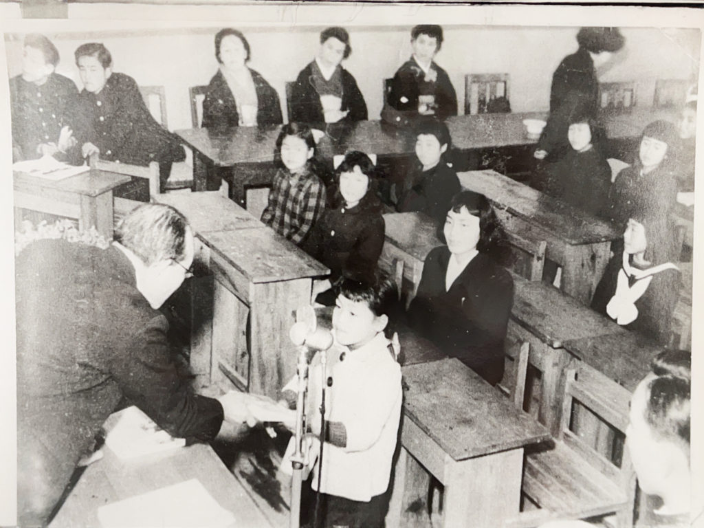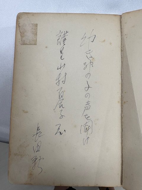 Patting every child’s head, Professor Osada said, “That must have been tough!” and “Keep your chin up!” then, one by one, he handed us the book. He said to me, “Stay healthy and happy always!” On the flyleaf of the book, he wrote, “Listen to the children’s divine voices. Arata Osada.” At that moment, I realized for the first time that my memoir was really published in the book.